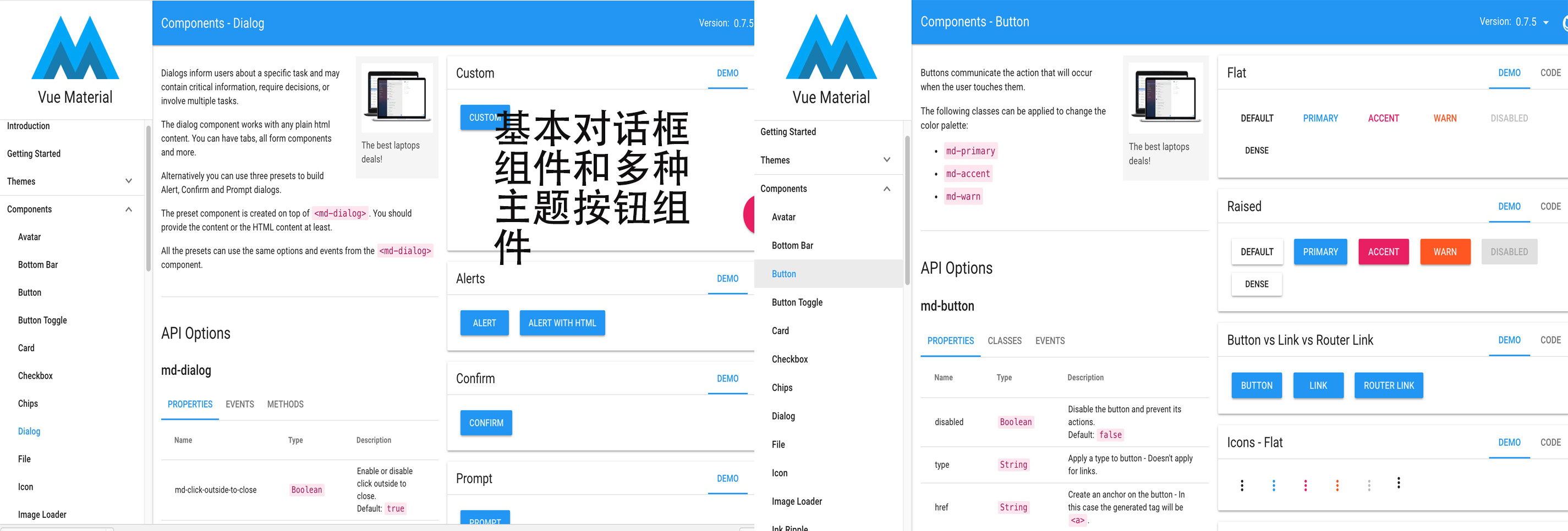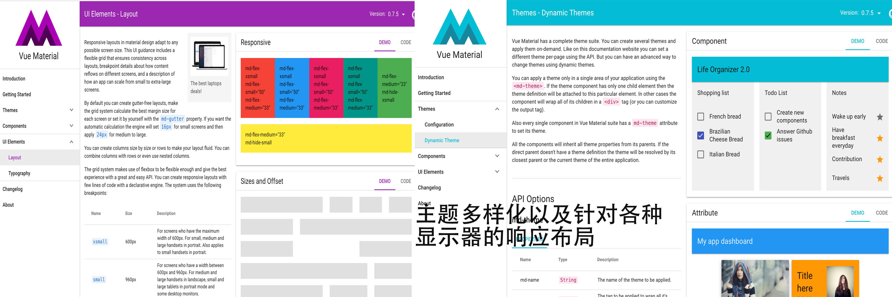 这是一个自己想写的基于谷歌Material Design的框架,因为Vue-Material有着较好的适配性和兼容性.可以动态的切换主题,根据需求来使用组件,通过简单易懂的 API 来使用丰富的UI元素和组件。基于vue2.0, 提供一系列可重复使用的组件和一系列的UI元素来构建的应用和页面,兼容移动设备上的和PC上大部分的现代浏览器。