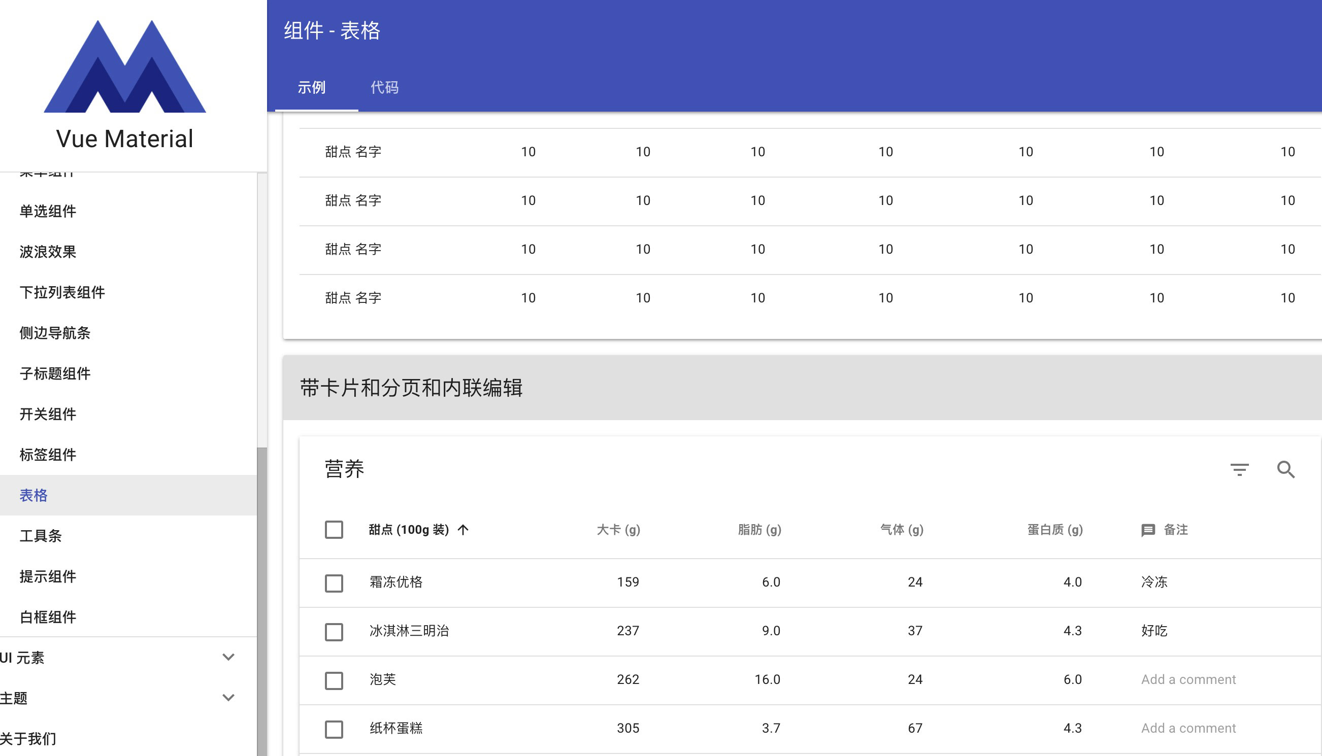 | 复选框 | ✔︎ | 表格组件 | ✔︎ |
